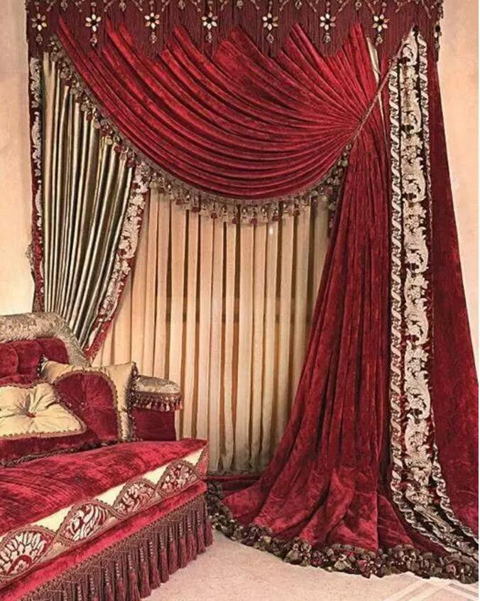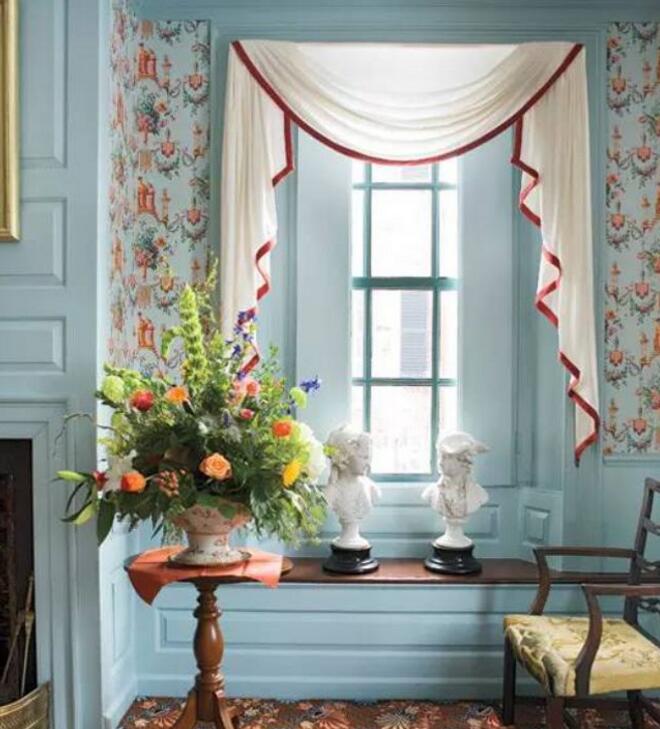 垂波幔好像窗簾的披肩,樣式美觀多變,造型優雅大氣,線條富有歐式古典美,是從古至今都非常受歡迎的樣式。